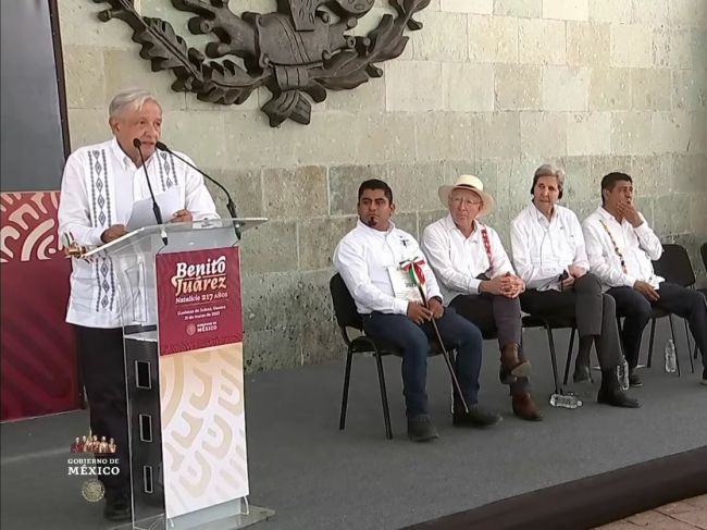 Durante la ceremonia en la que estaban presentes, entre otros, López Obrador, el canciller Marcelo Ebrard y el gobernador del estado, Salomon Jara, Kerry destacó que hay que celebrar lo que ha reivindicado el presidente de Estados Unidos, Joe Biden: “Estados Unidos y México para siempre”.
