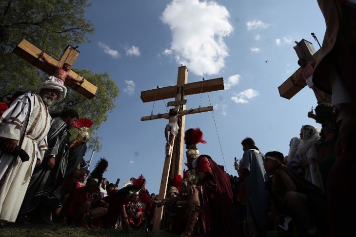 A la diestra de Cristo, Dimas se desmayó en la cruz. El sol fue el gran tirano que no sólo deshidrató a nazarenos y centuriones este Viernes Santo en Iztapalapa. Durante la representación 180 de la pasión de Cristo en la Ciudad de México el intenso calor hizo que el actor que representaba a uno de los ladrones que son crucificados junto con Jesús, se desvaneciera en lo alto de la estructura de madera.