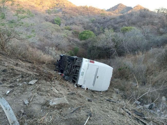 De acuerdo con información de Protección Civil Jalisco la volcadura del camión de pasajeros ocurrió en el kilómetro 74 de la autopista Guadalajara-Tepic la madrugada de hoy miércoles 10 de mayo.