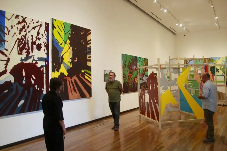 Las formas se "salen" de los cuadros en estructuras que dialogan con la muestra e invitan a los asistentes a adentrarse a una especie de jardín.