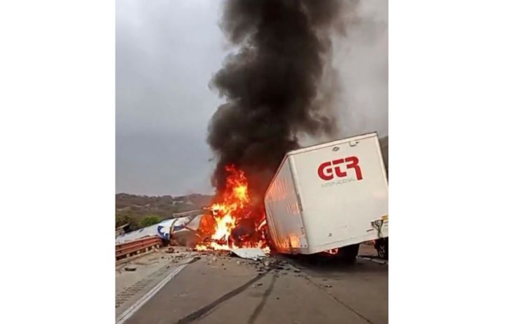 Se reportó que un tractocamión, un camión de carga y al menos dos vehículos particulares están involucrados en el accidente, en el cual el tráiler se incendió y quedó atravesado sobre la autopista.