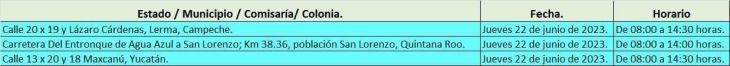 Las reparaciones serán en una zona de Campeche, una de Quintana Roo y una de Yucatán.