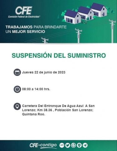 Este jueves 22 de junio, la Comisión Federal de Electricidad (CFE) realizará trabajos de mantenimiento a la red eléctrica en la península de Yucatán.