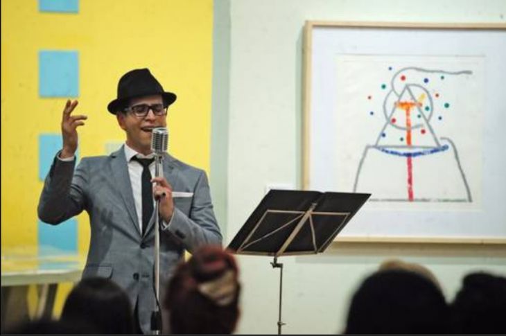 El mundo bucólico de Rojo se pudo escuchar a través del canto de Guarneros, quien canción tras canción y sólo con una bocina y las pistas, relataba aspectos e ideas del artista plástico. “Cada una de sus obras es una invitación para volar con él”, comentaba el cantante antes de soltar Come Fly With Me.