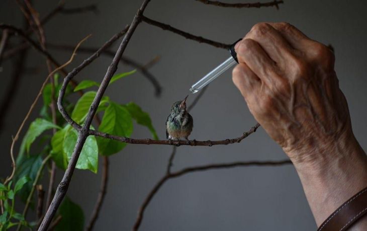 Aunque no sabía nada de colibríes, contacto a un amigo veterinario que le fue explicando todo lo que necesitaban estas aves, los medicamentos que debía proporcionarles, la comida que debía darles y en general todos los cuidados.