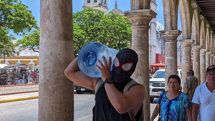 En Cancún, regalan agua a transeúntes para evitar golpes de calor