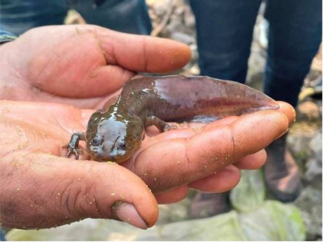 Agregó que con el apoyo del municipio, que encabeza Mariela Gutiérrez, en febrero pasado durante un proceso de limpieza del jagüey, “atorado en una red, constatamos la existencia del ajolote atigrado”.