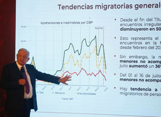 “Lo que se busca es que puedan haber opciones de trabajo, de capacitación para migrantes. Y al mismo tiempo que puedan hacer sus trámites para llegar a Estados Unidos, los que lo deseen, en especial de cuatro países: Haití, Venezuela, Colombia y Cuba, pueblos hermanos”, declaró esta mañana en su conferencia en Palacio Nacional el mandatario a pregunta sobre el tema.