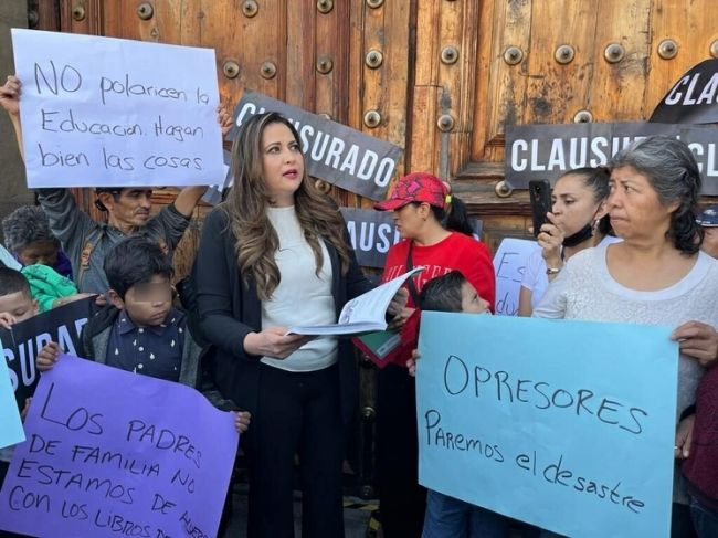 Por considerar que los nuevos libros de texto gratuito van a polarizar el pensamiento crítico de los niños de primaria y no abonan a la libertad de conciencia, la diputada federal y secretaria en la Comisión de Educación de la Cámara de Diputados, Cynthia López Castro efectuó una "clausura" simbólica en la sede de la Secretaría de Educación Pública (SEP), ubicada en la calle Brasil 31 del Centro Histórico de la CDMX.