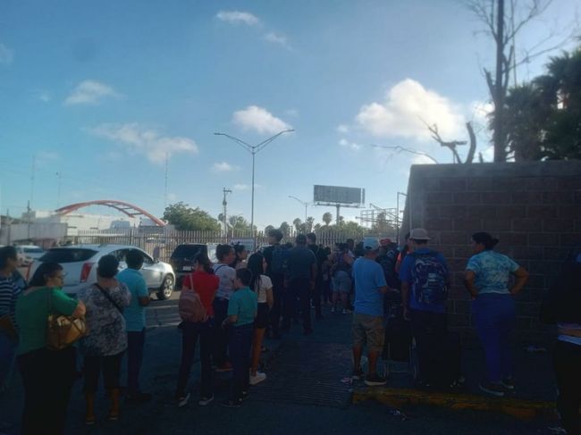 Los extranjeros, originarios de Venezuela y Haití, bajaron desde el bordo del río Bravo donde viven en un campamento a cielo abierto y se concentraron en un área federal antes de las casetas de cobro.