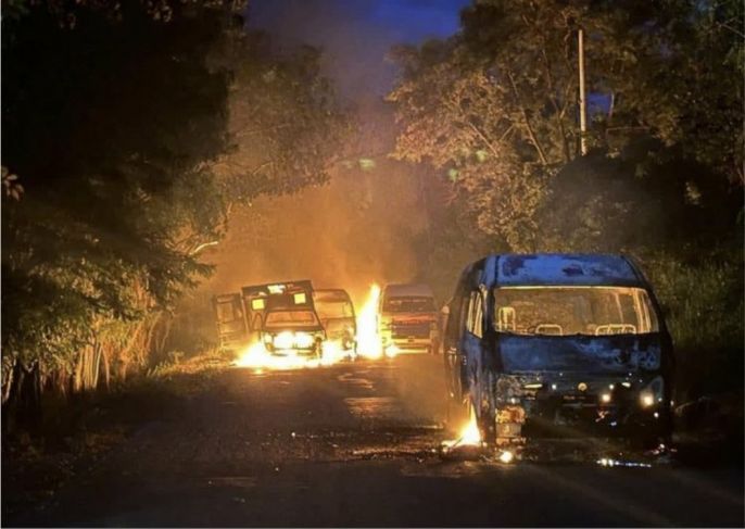 Explicaron que las unidades quemadas provocaron el cierre de la circulación a la altura de comunidad Nueva Morelia. “Quemaron tres unidades de transporte público, uno de la empresa Sabritas y otro más”, detallaron