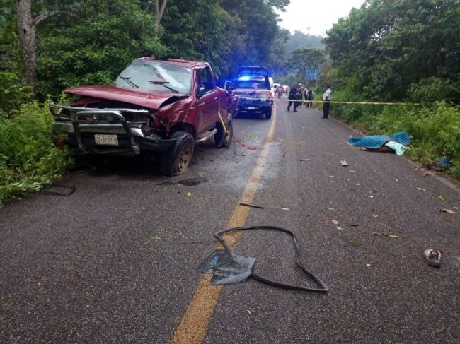 Explicaron que el percance sucedió la tarde del sábado cuando en el tramo carretero federal Santo Domingo-Unión Juárez, a la altura de un banco de arena se accidentó la camioneta Toyota Tacoma, roja, con placas de circulación CZ-5754-B de Chiapas.