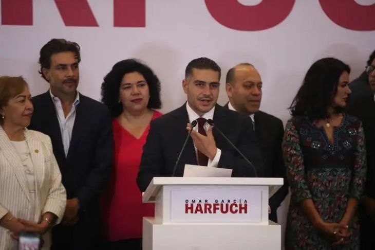 García Harfuch ofreció un mensaje en un hotel localizado en Viaducto Río de la Piedad, donde llegaron decenas de simpatizantes que corearon “es un honor estar con Harfuch hoy”. Fue recibió con batucada afuera del inmueble.
