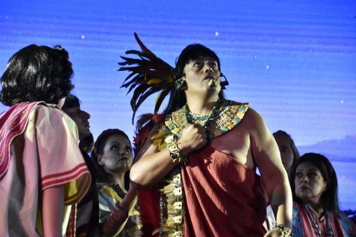 Más de 150 artistas suben al escenario para recrear los pasajes del tlatoani, sobre todo recordando la noche victoriosa del 30 de junio de 1520.