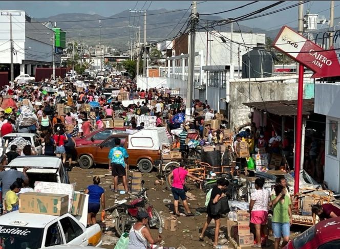Los pobladores piden a gritos ayuda, paran las camionetas de la Guardia Nacional o se acercan a los camiones de la Secretearía de la Defensa Nacional (Sedena) para preguntar si tienen alguna despensa, garrafones o botellas de agua que les puedan regalar. Afirman que en sus colonias las tiendas ya no tienen nada que vender, sus calles están bloqueadas por árboles caídos, materiales, pedazos de roca, lodo. Sus casas, que en su mayoría tienen techumbres de lámina metálica o de cartón, fueron arrancadas de tajo por el viento o destrozadas por el gua que llevaba el Huracán Otis, el cual golpeó el centro turístico y las colonias populares la madrugada del miércoles.