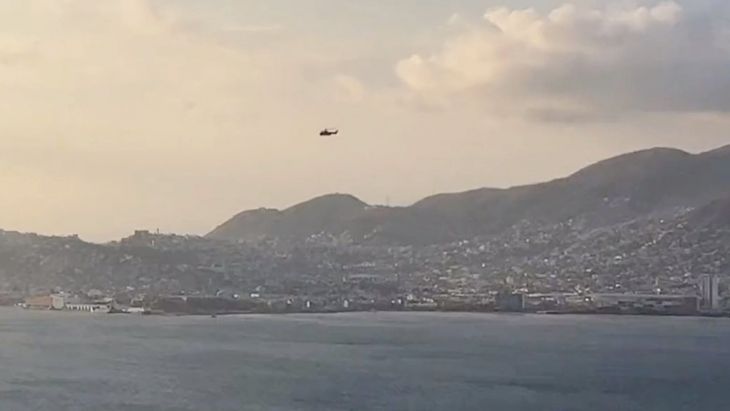 En un helicóptero de las Fuerzas Armadas, el presidente Andrés Manuel López Obrador realizó un sobrevuelo en Acapulco y otras zonas afectadas por el paso del huracán Otis.