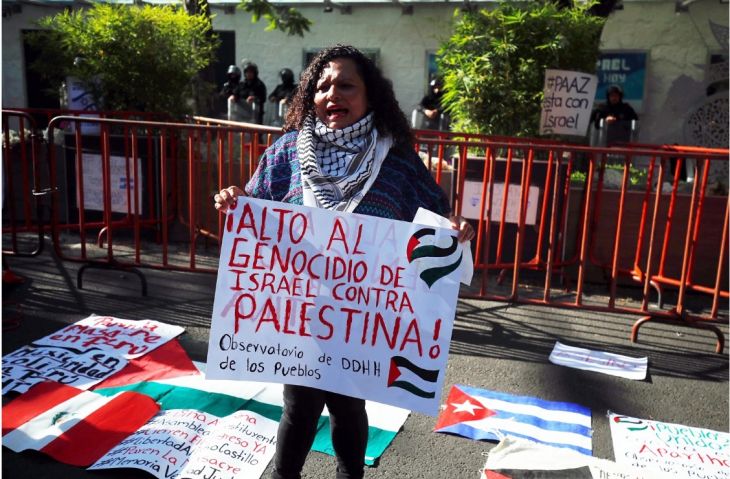 “No podemos vivir nuestras vidas en paz sabiendo que hoy siguen muriendo más. Queremos que la ocupación se acabe. Nos está tocando vivir en carne propia este genocidio y nos toca detenerlo, queremos que México rompa relaciones con Israel para detener este genocidio”, dijeron las manifestantes.