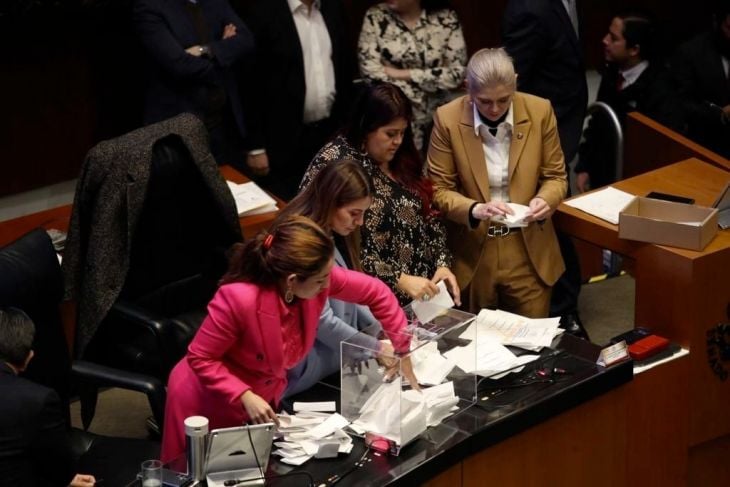 El pleno del Senado aprobó por 70 votos a favor de Morena y sus aliados, y 44 en contra de la oposición, el dictamen de idoneidad de la terna que envió el ejecutivo para elegir una nueva ministra de la Suprema Corte de Justicia de la Nación, la cual está integrada por Bertha Alcalde, Lenia Batres y María Estela Ríos.