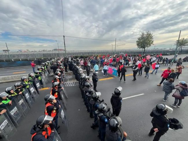 Los profesores agrupados en el Sindicato Independiente Nacional de Trabajadores del Colegio de Bachilleres (SINTCB) intentaron bloquear los accesos a la Terminal 1 del Aeropuerto Internacional de la Ciudad de México (AICM), pero fueron encapsulados para evitar que llegaran a Circuito Interior.