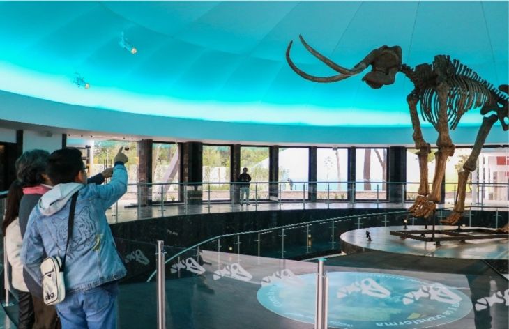En un primer conjunto de cuatro bóvedas se puede ver la representación de un dinosaurio, así como de un meteorito “que nos recuerda que el universo está mucho más cerca de lo que creemos”, expresó la secretaria de Medio Ambiente, Marina Robles, durante la inauguración.