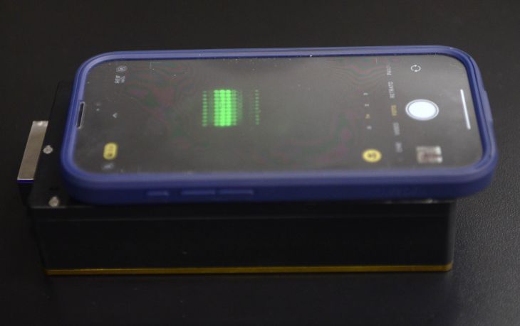 El vidrio iluminado produce una imagen de pequeños puntos que se proyecta a la cámara del celular, la cual a su vez determina los genes a través de una aplicación especial para realizar esta tarea.