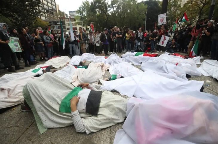 Los activistas insistieron en que México apoye la demanda interpuesta por Sudáfrica. “No basta la última declaración de México en la sesión de la ONU a favor de los procesos judiciales en contra del gobierno de Israel”, señala el documento.