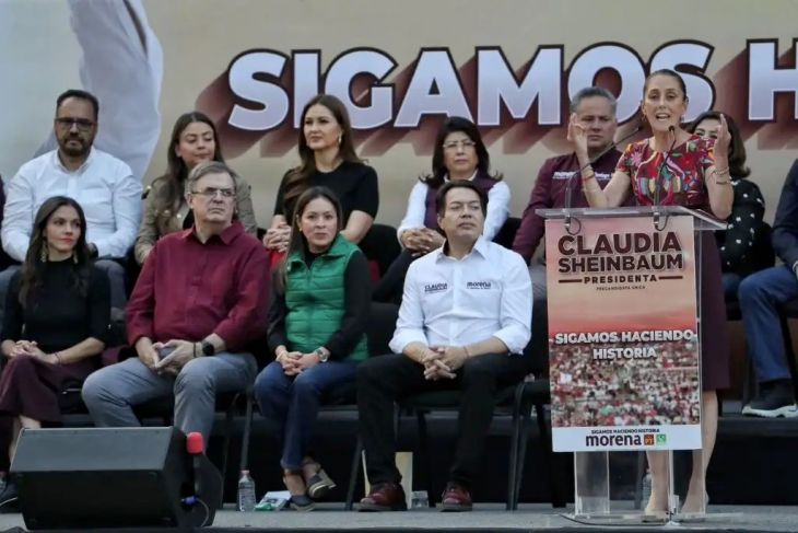 Durante su mitin, la abandera de Morena, PT y PVEM elogió al presidente Andrés Manuel López Obrador, y el modelo de humanismo mexicano impulsado por la 4T.