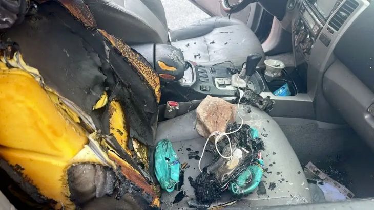 Cuando salieron se percataron que rompieron uno de los vidrios de la camioneta propiedad de la comunicadora y utilizaron botellas llenas de gasolina para incendiar parte del vehículo.