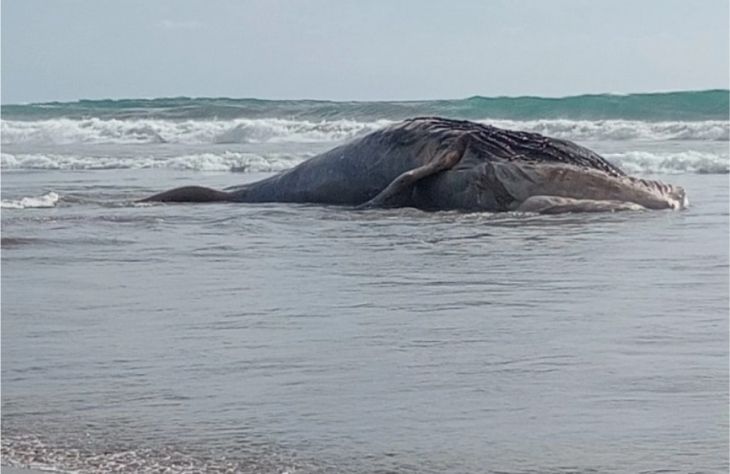 Se espera que en las próximas horas el mamífero sea remolcado por medio de una grúa o pala mecánica, para enterrarlo en un sitio cercano.
