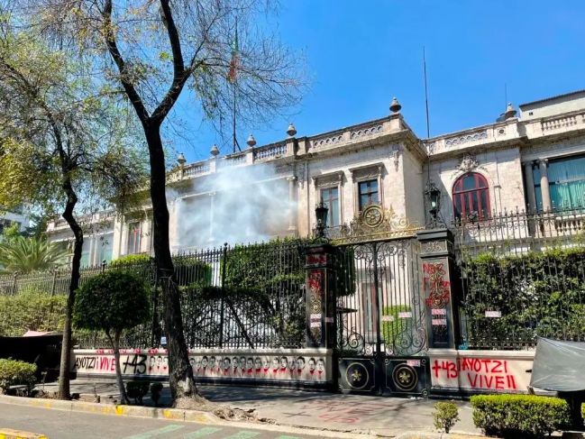 Al lugar llegaron tres camiones de bomberos; también se encuentran al interior elementos de la Guardia Nacional, así como elementos del Servicio de Protección Federal, quienes realizan el aseguramiento de los artefactos explosivos que lanzaron los manifestantes y no detonaron.