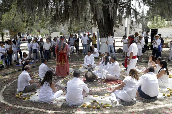 Nueve parejas mexicanas decidieron unirse en matrimonio mediante un ritual prehispánico en el centro de México, con la finalidad de recordar a los ancestros y la vida pasada, bajo el concepto del renacer que trae consigo el equinoccio de primavera.