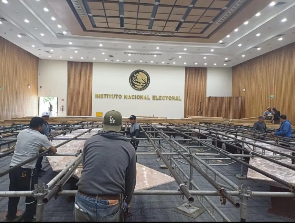 Este viernes inició la transformación del salón de sesiones del consejo general del Instituto Nacional Electoral (INE) para convertirse en el escenario para el primer debate presidencial que se realizará el próximo domingo 7 de abril a las ocho de la noche.
