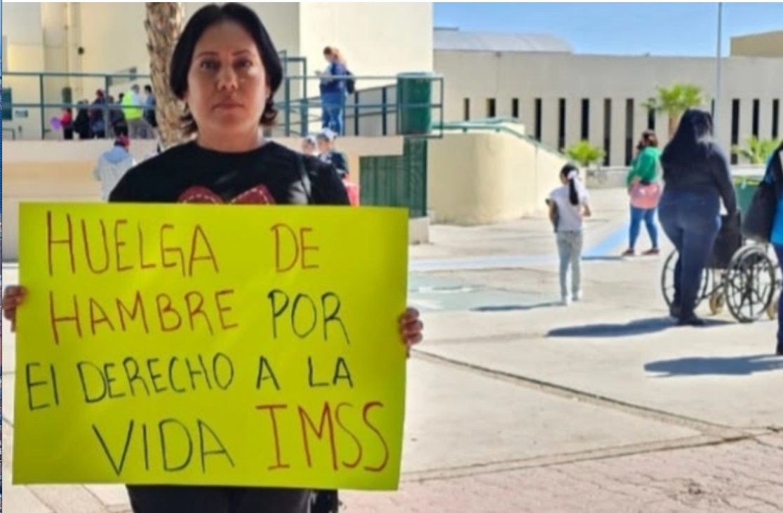 En demanda de justicia por la muerte de su hermano a causa de una negligencia médica del IMSS, una mujer cumplió 31 días en huelga de hambre frente al Hospital 30 de Mexicali.
