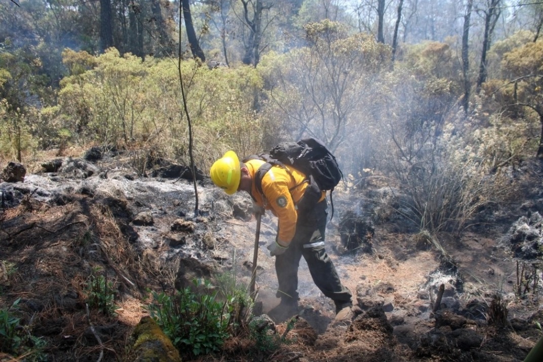 "Pese a que en las divisiones Media Luna y Calaveras el fuego ya está contenido se mantuvieron los trabajos de rescoldeo, vigilancia y aseguramiento de líneas de control", detalló el EEMI.