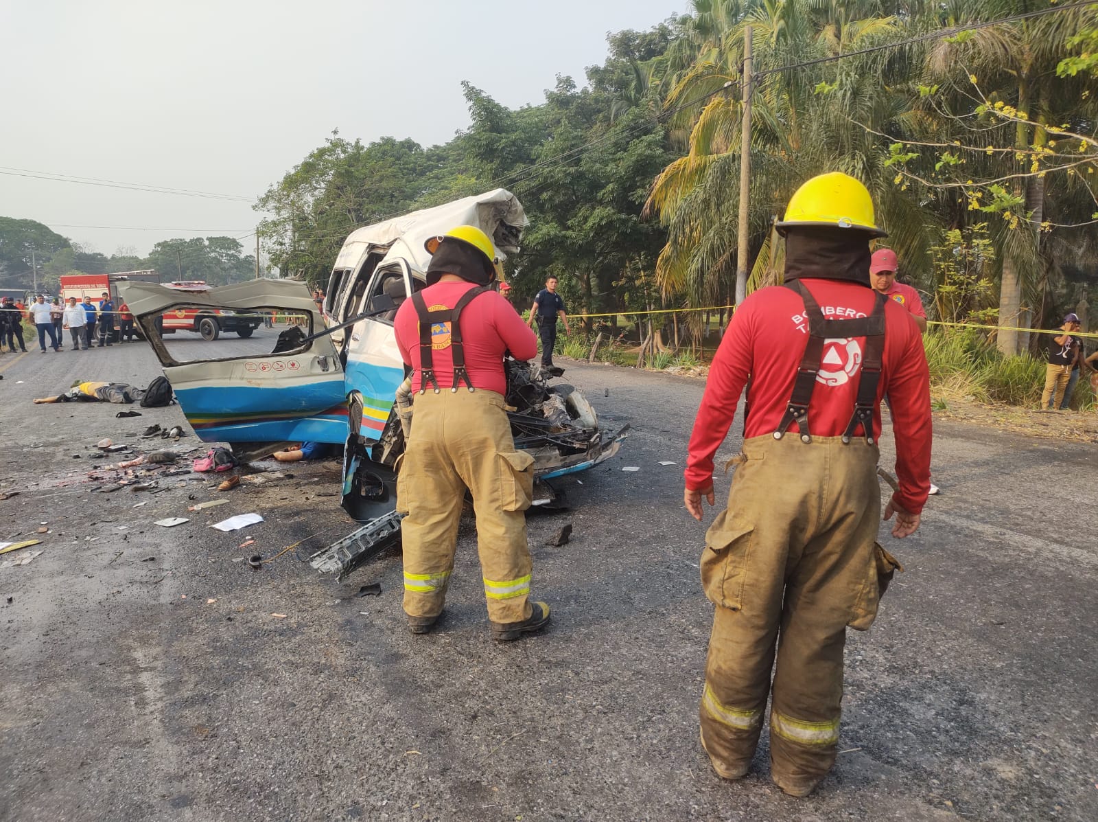 Al menos 12 muertos y seis heridos dejó un choque entre una combi de pasajeros y una camioneta particular en la vía corta de la carretera Cunduacán-Comalcalco, a unos 25 kilómetros de Villahermosa, Tabasco.