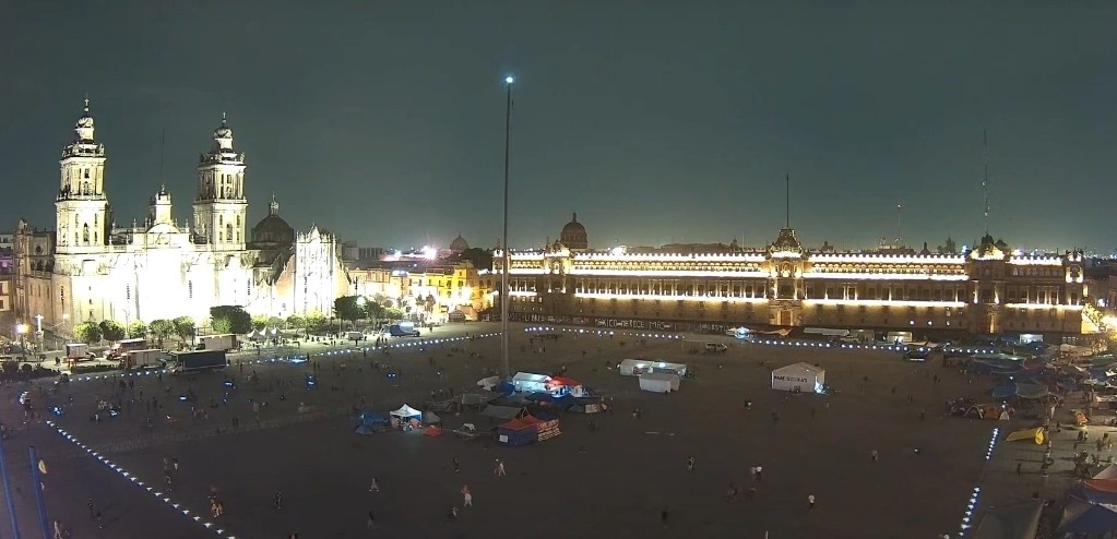 Las vallas que se han instalado en la Plaza de la Constitución dividen prácticamente a la mitad la plancha, a la altura del asta bandera, donde están instaladas las casas de campaña de los profesores de la sección 14 de Guerrero; de la sección 9 de la Ciudad de México y la mesa central del plantón.