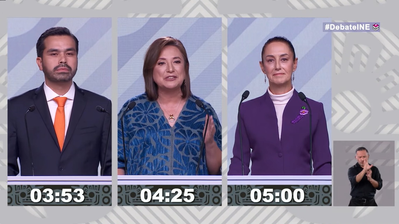 Jorge Álvarez Máynez, de MC, es el primer candidato presidencial en presentarse en este último encuentro, seguido de Xóchitl Gálvez y Claudia Sheinbaum, respectivamente.