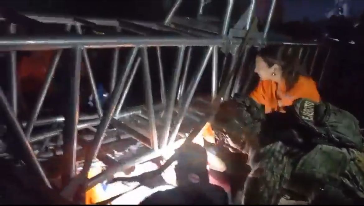 Álvarez Máynez corrió muy rápido hacia el fondo del escenario para evitar que la estructura la cayera encima, así como una pantalla con el logo del partido y luces estilo teatro; su coordinadora de campaña, Laura Ballesteros, quien resultó lesionada con fractura de pierna.
