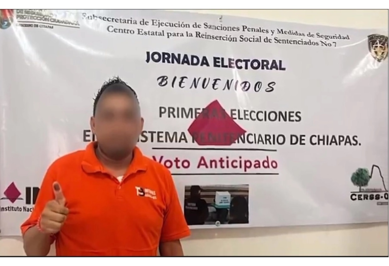 "La Secretaría de Seguridad y Protección Ciudadana del estado de Chiapas, a través de la Subsecretaría de Sanciones Penales y Medidas de Seguridad, dio puntual acompañamiento a representantes del INE, así como de partidos políticos, para que en los Centros Estatales de Reinserción Social se efectuara esta jornada histórica de voto anticipado con los protocolos de seguridad, que por primera vez se lleva a cabo en nuestra entidad, garantizando con ello los derechos de las personas privadas de la libertad en prisión preventiva", señaló.