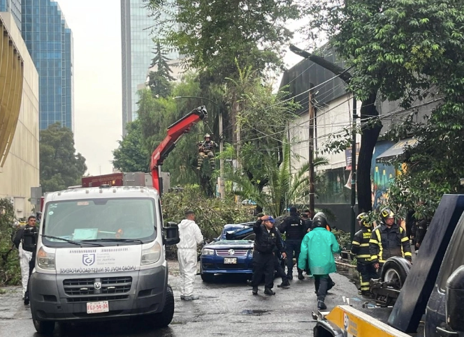 Debido a las fuertes lluvias de este viernes en la Ciudad de México, un árbol cayó sobre un vehículo que se encontraba entre las calles Dakota y Filadelfia, en la colonia Nápoles, el automóvil se encontraba tripulado por una mujer de 38 años y un niño, quienes al caer el árbol quedaron atrapados dentro.