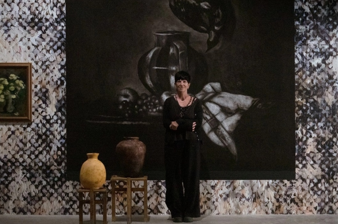 "Siete óleos que pintó mi madre se exponen en la muestra; además, invité a mi hija. Usé el carbón y las materialidades para rescribir la historia. Mi madre murió joven de manera trágica. La composta y el humus es un cuerpo restaurado y le doy vida. Como lo que hacen las madres buscando a sus desaparecidos, lo que hace María Us sembrando un bosque; yo eché cenizas de mi madre en la laguna de Zempoala para que se regenere en esa naturaleza. El carbón y el barro tienen memoria; es dar poder a esa historia", mencionó conmovida.