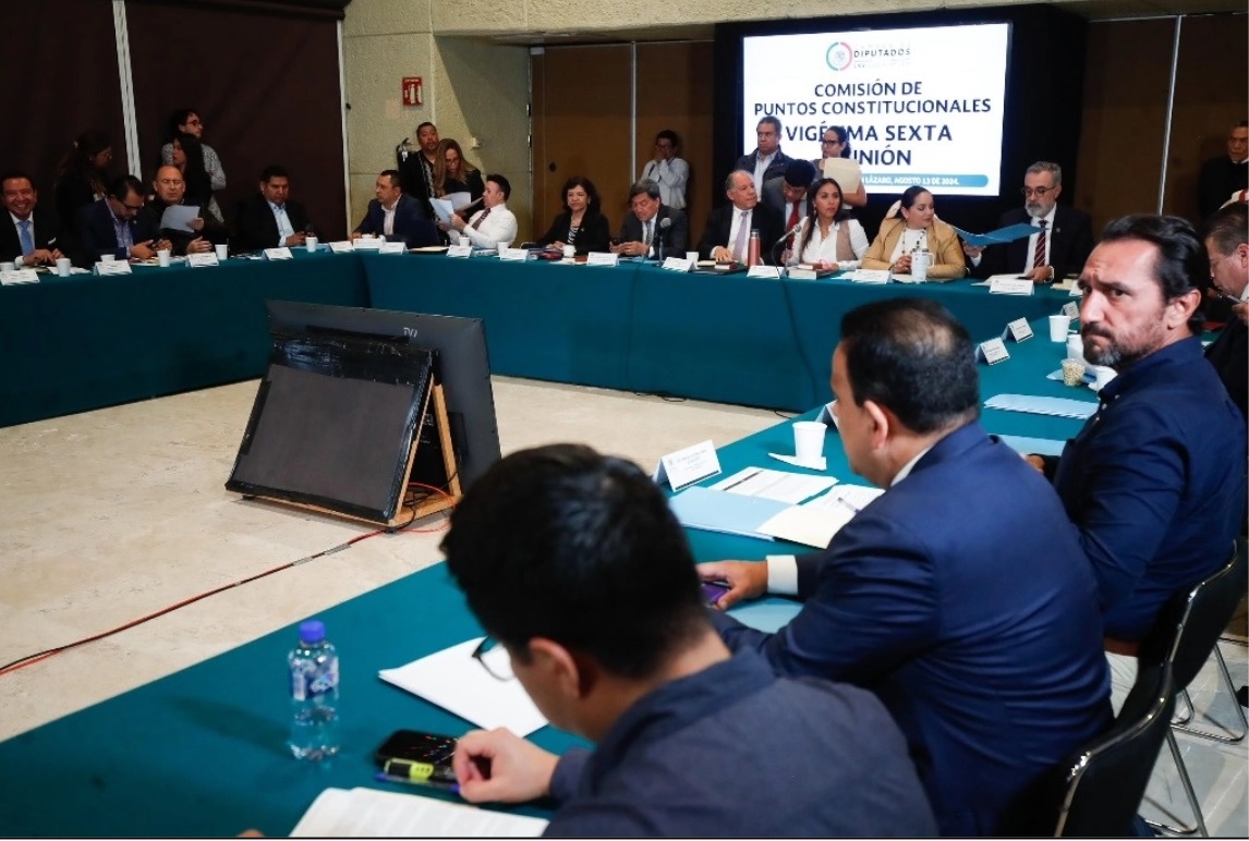 Los coordinadores de Morena, de PT y PVEM en la Cámara de Diputados, Ignacio Mier, Reginaldo Salazar y Carlos Alberto Puente, acompañados del presidente de la Comisión de Puntos Constitucionales, Juan Ramiro Robledo, hicieron el anuncio y precisaron que el proyecto de dictamen estará a discusión los próximos días y se votará en San Lázaro en dos semanas.