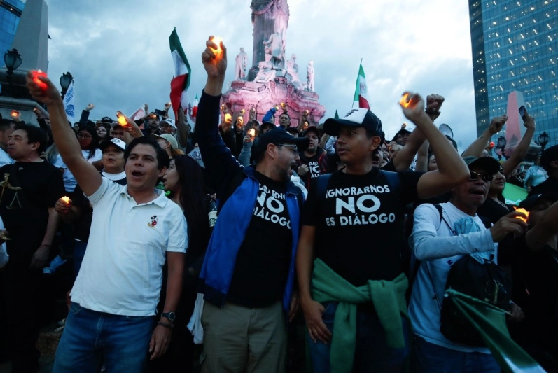Desde el Ángel de la Independencia, donde se manifestaron éste lunes por la noche, jueces y magistrados calificaron de una "burla" que los diputados federales aprobaran el dictamen de reforma al Poder Judicial de la Federación (PJF) y advirtieron que "lo van a echar atrás" porque, afirmaron, se aprobó con irregularidades.