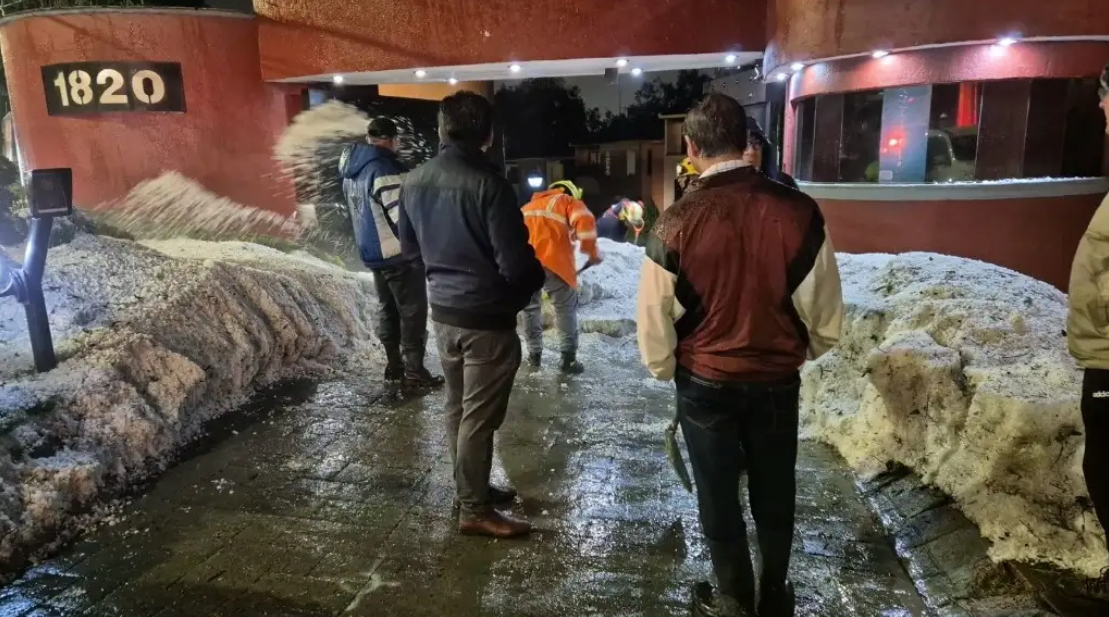 Asimismo, se registró acumulación de granizo en la Supervía Poniente, donde personal de Protección Civil ya se encuentra trabajando para el retiro del granizo.
