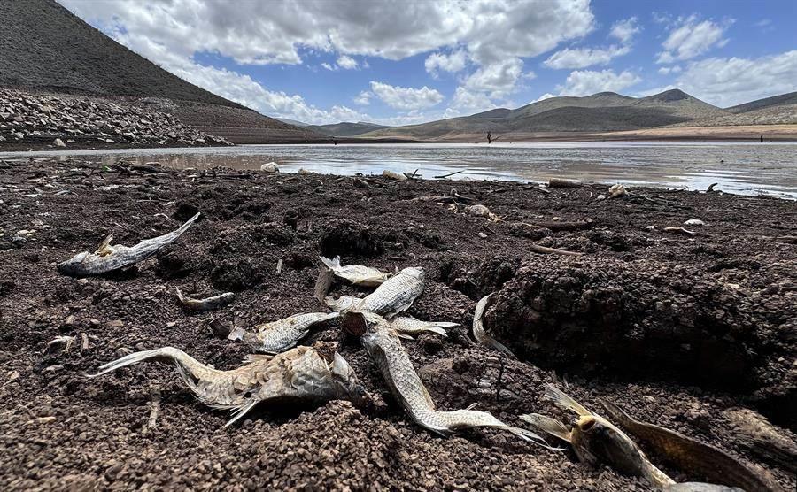 Esto se observa en la presa de Las Lajas, donde hay peces muertos flotando en la superficie.