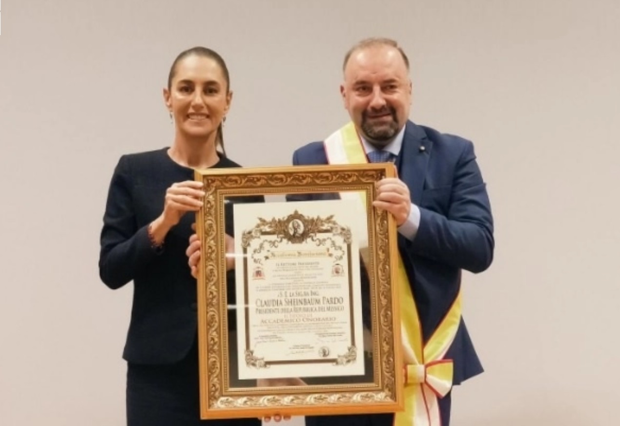 “Agradezco a la Academia Bonifaciana y la presencia de su rector, doctor Sante De Angelis, por otorgarme el Premio Internazionale Bonifacio VIII por la Cultura de la paz, en su edición XXII por la trayectoria académica y política”, señaló la presidenta electa.