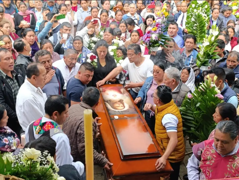 El ataúd color madera fue cargado en hombros durante dos cuadras por familiares y amigos. Pasó frente a la antigua alcaldía oficial, ahora sede el municipio autónomo zapatista Sacamchén de los Pobres y frente al edificio en el que el 16 de febrero de 1996 se firmaron los acuerdos de paz entre el gobierno federal y el Ejército Zapatista de Liberación Nacional (EZLN), que todavía no se han cumplido.
