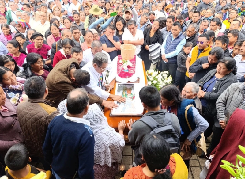 Acompañado por más de cien personas, el ataúd color madera salió a las 9 horas de sus padres hacia el altar instalado frente al templo de San Andrés, donde ya lo esperaban cientos de personas.