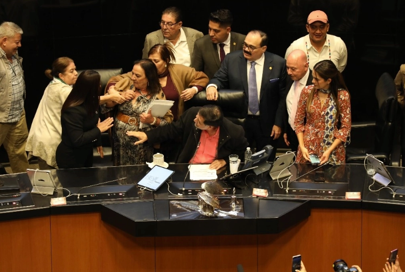 Alito bajó y desde su escaño sostuvo que no agredió a Fernández Noroña e insistió en que la reforma aprobada “es un atropello a la Constitución”. De nuevo echó en cara al grupo de la 4/T que lograron la mayoría calificada, al llevarse a dos senadores del PRD y con amenazas a otros.