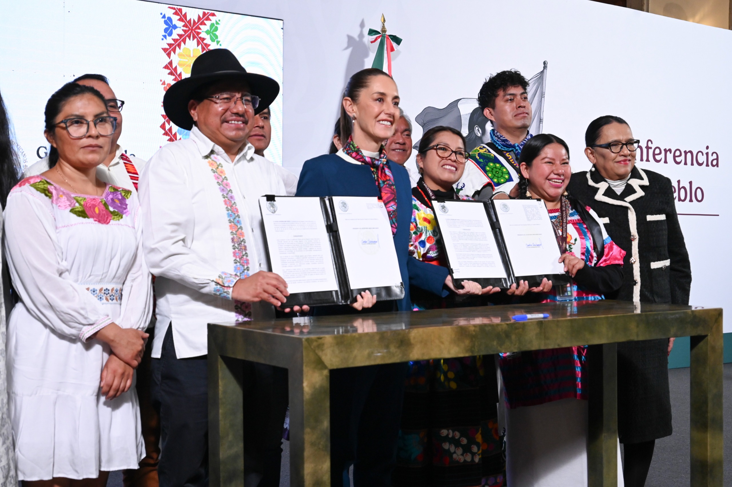 En este marco, la presidenta Claudia Sheinbaum firmó dos decretos dirigidos a los pueblos indígenas: uno mediante el cual se les otorgan derechos plenos y otro a través del cual se crea una Comisión Presidencial para dar seguimiento a la instrumentación de los 17 planes de justicia que están en curso, similares al que en su momento se realizó con el pueblo yaquí.